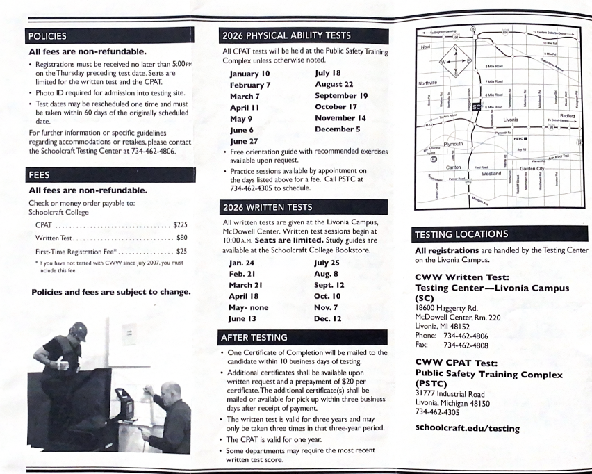 The CWW Firefighter Testing Program is a cooperative partnership between many local governments, fire chiefs, Human Resource directors and Schoolcraft College. It has been a model and award-winning public service project since 1996.